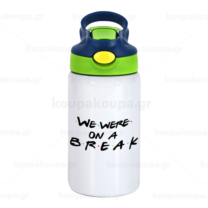 Friends we were on a break, Children's hot water bottle, stainless steel, with safety straw, green, blue (350ml)