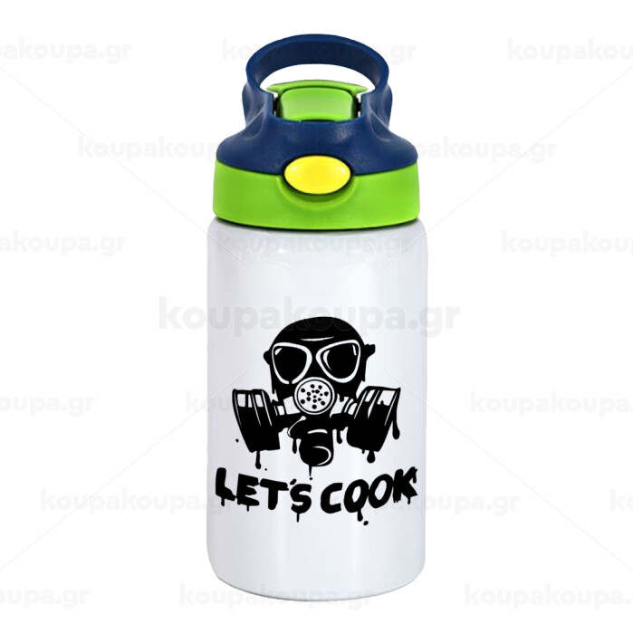 Let's cook mask, Children's hot water bottle, stainless steel, with safety straw, green, blue (350ml)