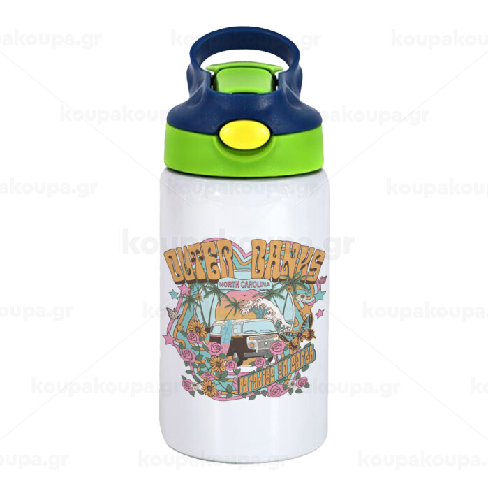 Outerbanks paradise on earth, Children's hot water bottle, stainless steel, with safety straw, green, blue (350ml)