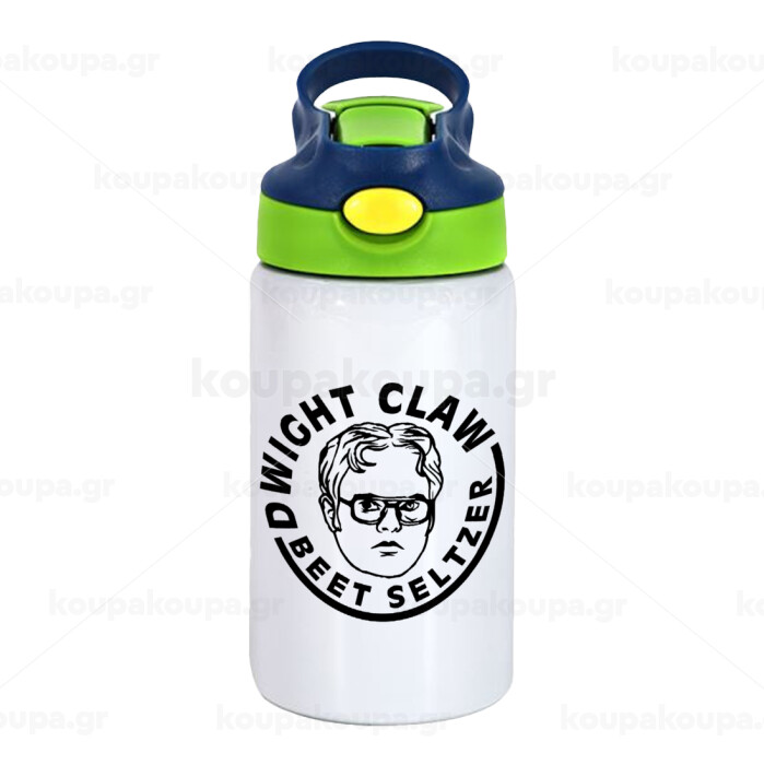 The office Dwight Claw (beet seltzer), Children's hot water bottle, stainless steel, with safety straw, green, blue (350ml)