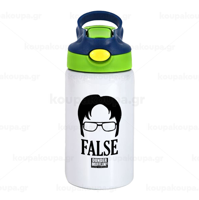 The office Dwight false, Children's hot water bottle, stainless steel, with safety straw, green, blue (350ml)