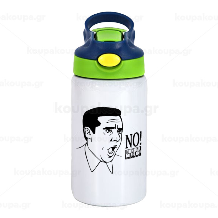 The office Michael NO!!!, Children's hot water bottle, stainless steel, with safety straw, green, blue (350ml)