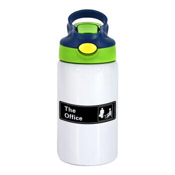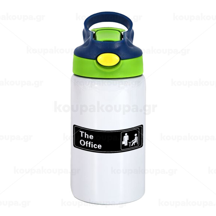 The office, Children's hot water bottle, stainless steel, with safety straw, green, blue (350ml)