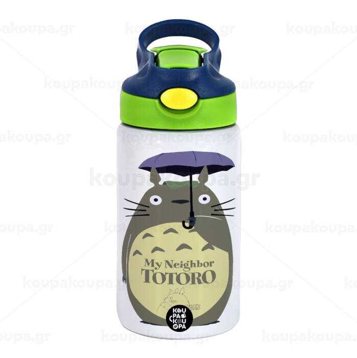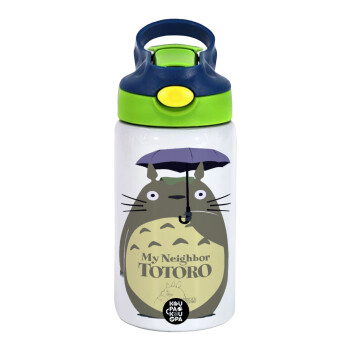 Totoro from My Neighbor Totoro, Children's hot water bottle, stainless steel, with safety straw, green, blue (350ml)