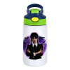 Wednesday moonlight, Children's hot water bottle, stainless steel, with safety straw, green, blue (350ml)