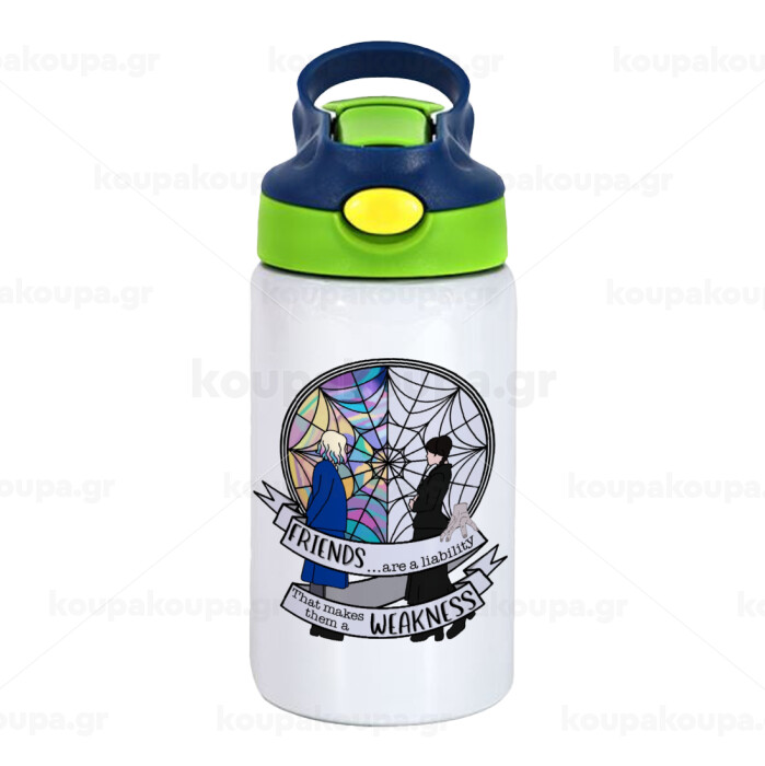 Wednesday window, Children's hot water bottle, stainless steel, with safety straw, green, blue (350ml)