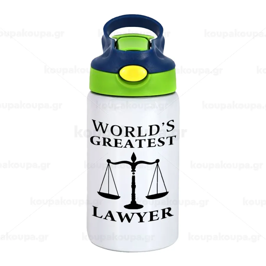 World's greatest Lawyer, Children's hot water bottle, stainless steel, with safety straw, green, blue (350ml)