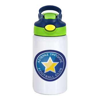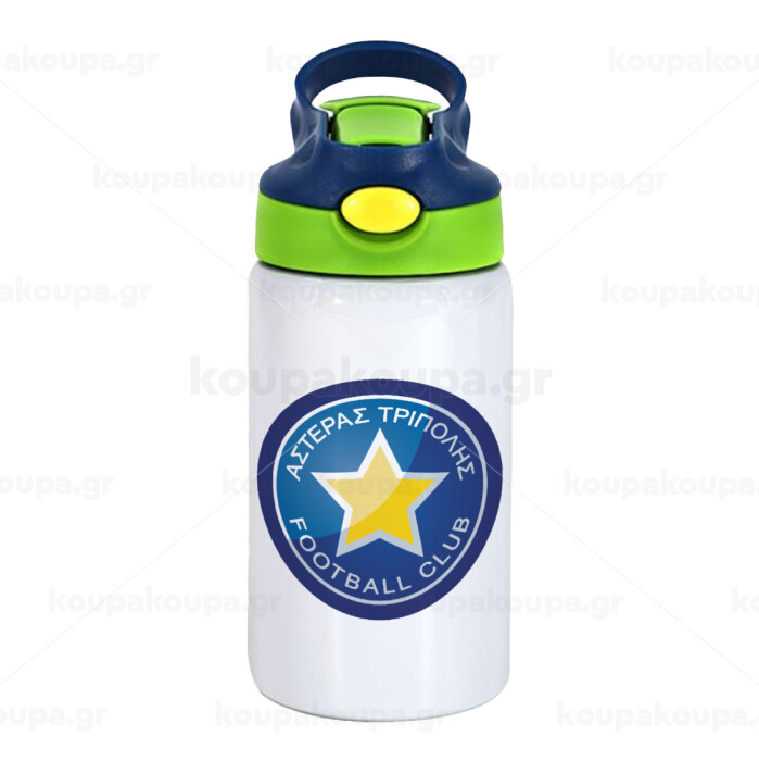 Asteras Tripolis, Children's hot water bottle, stainless steel, with safety straw, green, blue (350ml)