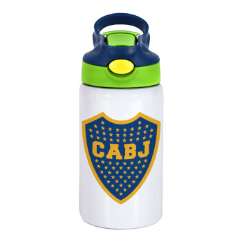 Club Atlético Boca Juniors, Children's hot water bottle, stainless steel, with safety straw, green, blue (350ml)
