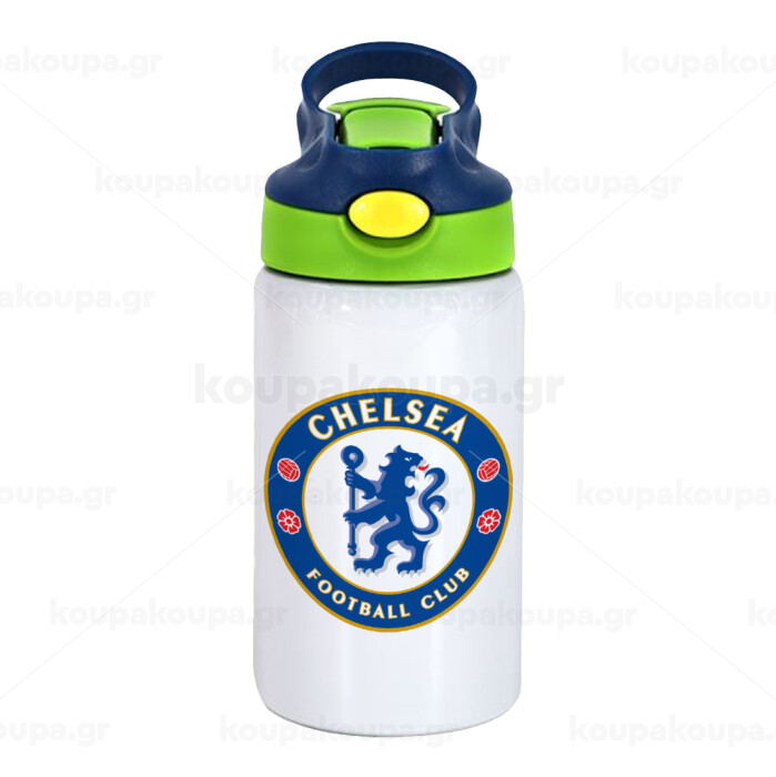 FC Chelsea, Children's hot water bottle, stainless steel, with safety straw, green, blue (350ml)