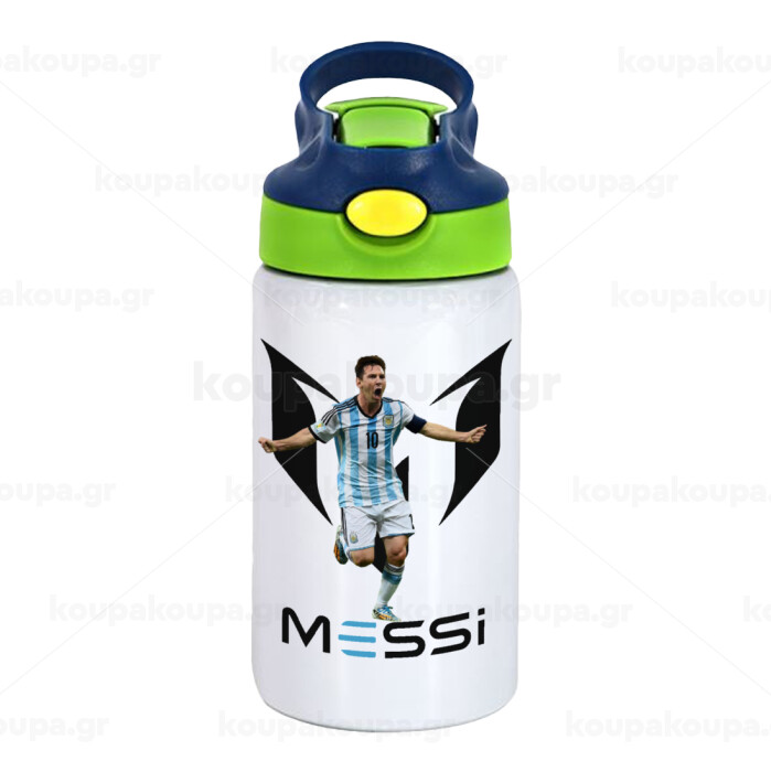 Lionel Messi, Children's hot water bottle, stainless steel, with safety straw, green, blue (350ml)