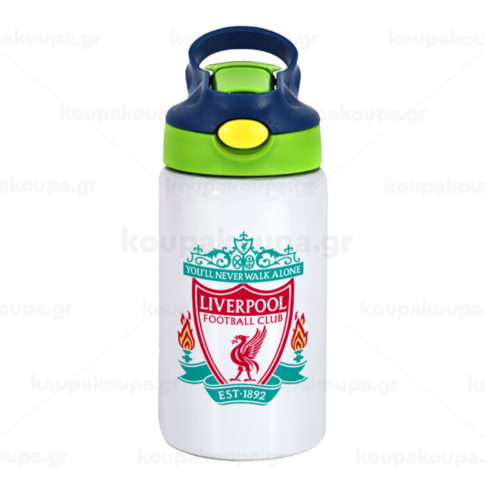 Liverpool, Children's hot water bottle, stainless steel, with safety straw, green, blue (350ml)