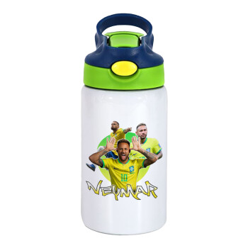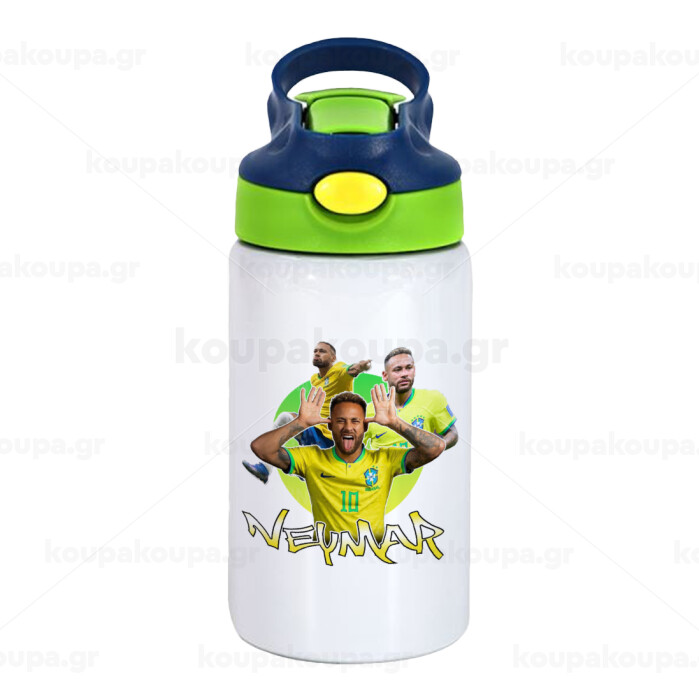 Neymar JR, Children's hot water bottle, stainless steel, with safety straw, green, blue (350ml)