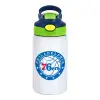 Philadelphia 76ers, Children's hot water bottle, stainless steel, with safety straw, green, blue (350ml)