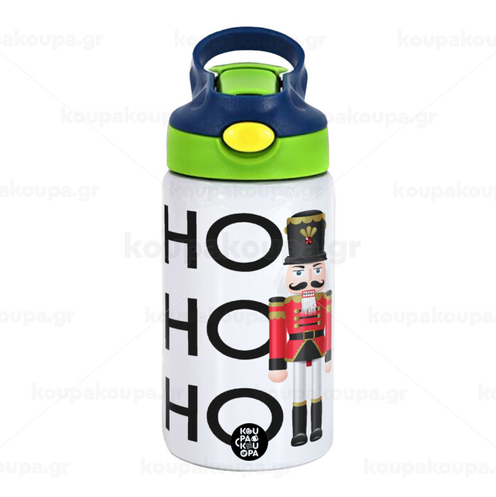 Nutcracker, Children's hot water bottle, stainless steel, with safety straw, green, blue (350ml)