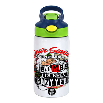 Dear Santa, sorry for all the F-bombs, Children's hot water bottle, stainless steel, with safety straw, green, blue (350ml)
