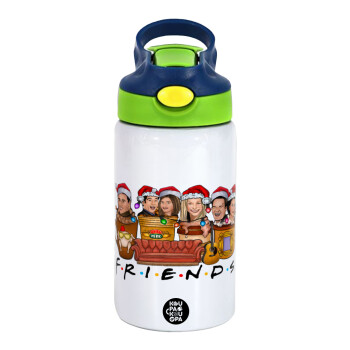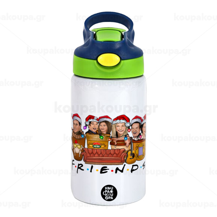 FRIENDS xmas, Children's hot water bottle, stainless steel, with safety straw, green, blue (350ml)