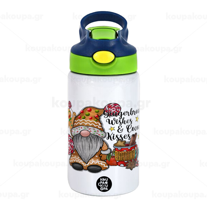 Gingerbread Wishes, Children's hot water bottle, stainless steel, with safety straw, green, blue (350ml)