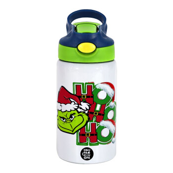 Grinch ho ho ho, Children's hot water bottle, stainless steel, with safety straw, green, blue (350ml)