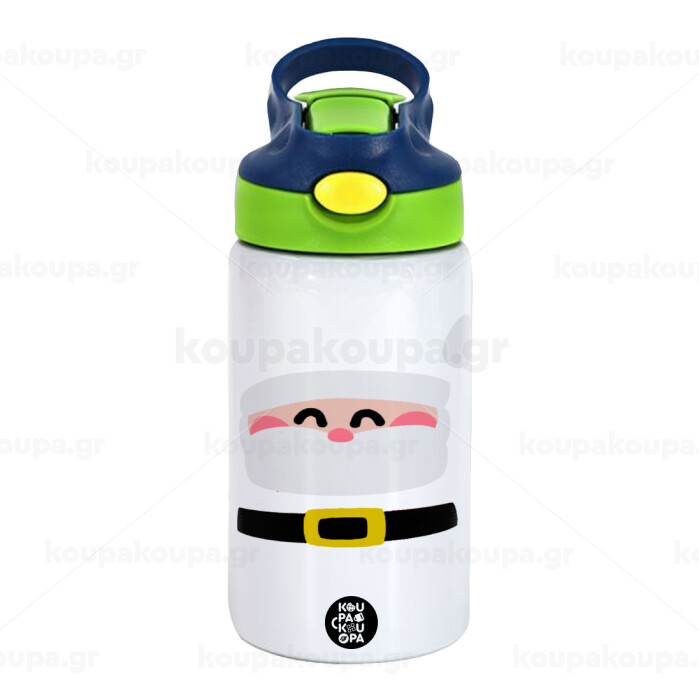 Simple Santa, Children's hot water bottle, stainless steel, with safety straw, green, blue (350ml)