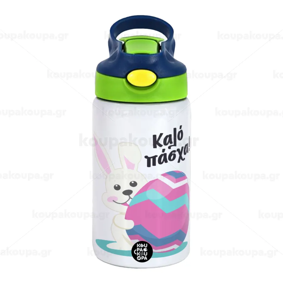 Καλό πάσχα, Children's hot water bottle, stainless steel, with safety straw, green, blue (350ml)