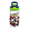 Halloween Inside out, Children's hot water bottle, stainless steel, with safety straw, green, blue (350ml)