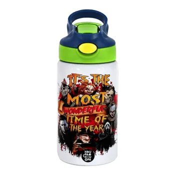 Halloween it's most wonderful time of the year, Children's hot water bottle, stainless steel, with safety straw, green, blue (350ml)