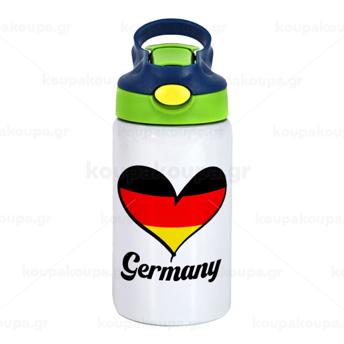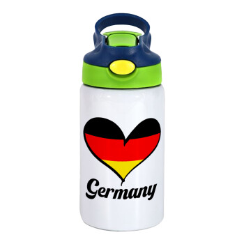Germany flag, Children's hot water bottle, stainless steel, with safety straw, green, blue (350ml)