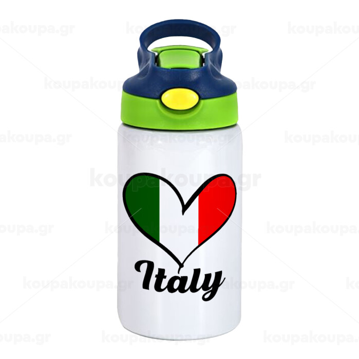 Italy flag, Children's hot water bottle, stainless steel, with safety straw, green, blue (350ml)