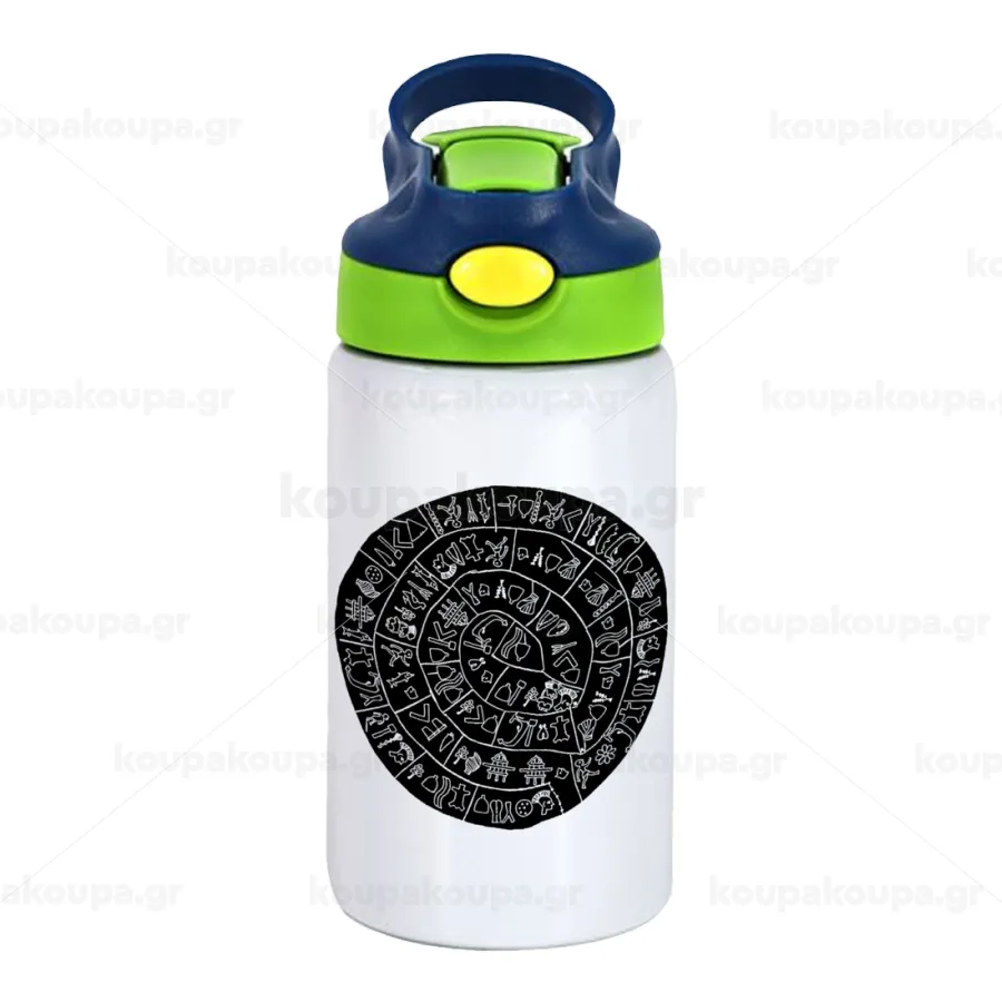 Δίσκος Φαιστού, Children's hot water bottle, stainless steel, with safety straw, green, blue (350ml)