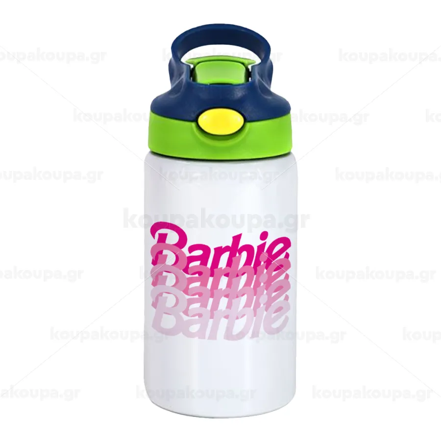 Barbie repeat, Children's hot water bottle, stainless steel, with safety straw, green, blue (350ml)