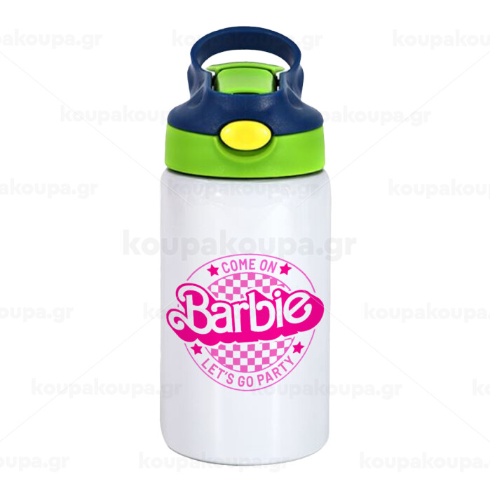Come On Barbie Lets Go Party , Children's hot water bottle, stainless steel, with safety straw, green, blue (350ml)