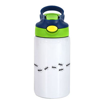 Ants, Children's hot water bottle, stainless steel, with safety straw, green, blue (350ml)