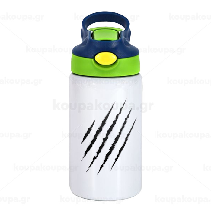 Claw scratch, Children's hot water bottle, stainless steel, with safety straw, green, blue (350ml)