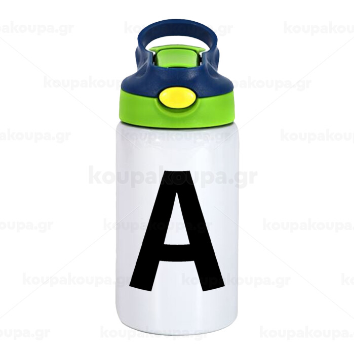Μονόγραμμα , Children's hot water bottle, stainless steel, with safety straw, green, blue (350ml)