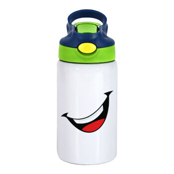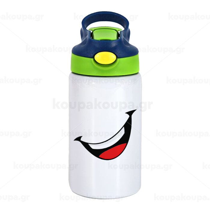 Φατσούλα γελάω!!!, Children's hot water bottle, stainless steel, with safety straw, green, blue (350ml)