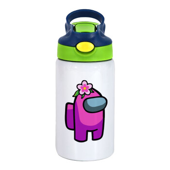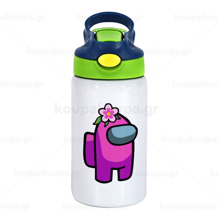 Among US girl, Children's hot water bottle, stainless steel, with safety straw, green, blue (350ml)