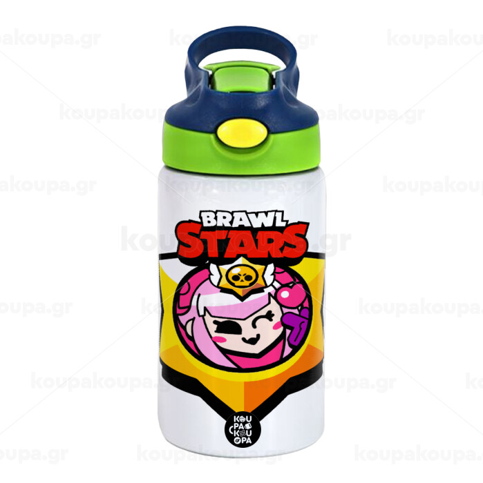Brawl Stars Melodie, Children's hot water bottle, stainless steel, with safety straw, green, blue (350ml)