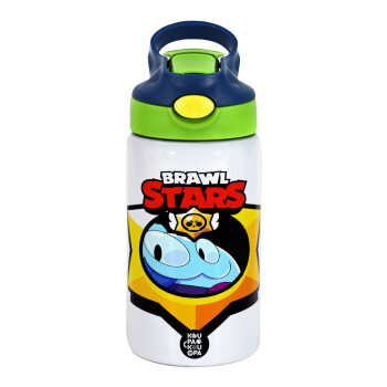 Brawl Stars Squeak, Children's hot water bottle, stainless steel, with safety straw, green, blue (350ml)