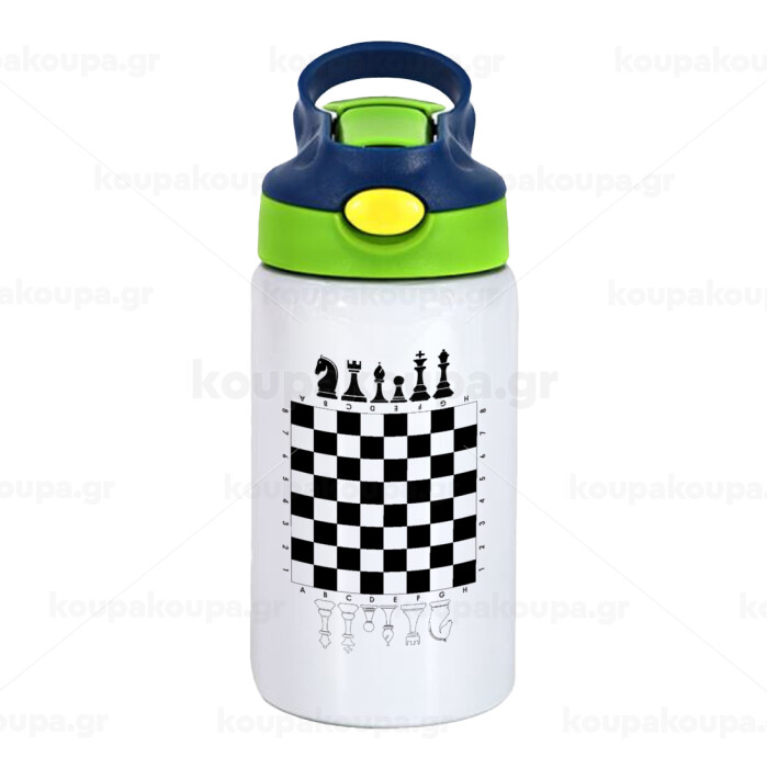 Chess, Children's hot water bottle, stainless steel, with safety straw, green, blue (350ml)
