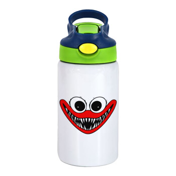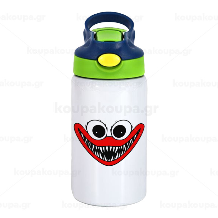 Huggy wuggy, Children's hot water bottle, stainless steel, with safety straw, green, blue (350ml)
