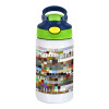 Minecraft blocks, Children's hot water bottle, stainless steel, with safety straw, green, blue (350ml)