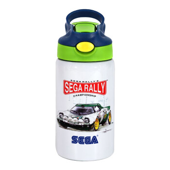 SEGA RALLY 2, Children's hot water bottle, stainless steel, with safety straw, green, blue (350ml)