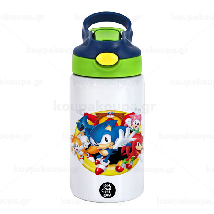 Sonic and friends, Children's hot water bottle, stainless steel, with safety straw, green, blue (350ml)