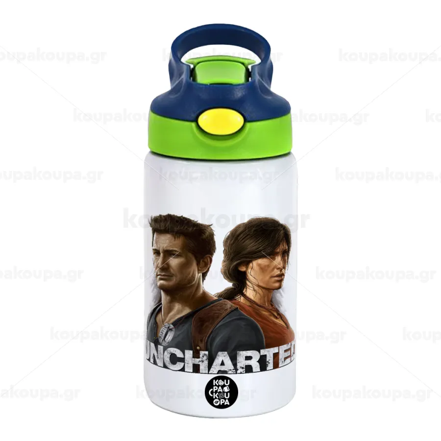 Uncharted, Children's hot water bottle, stainless steel, with safety straw, green, blue (350ml)