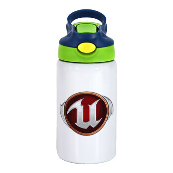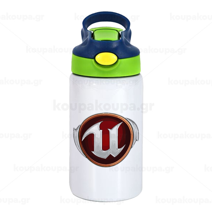 Unreal, Children's hot water bottle, stainless steel, with safety straw, green, blue (350ml)