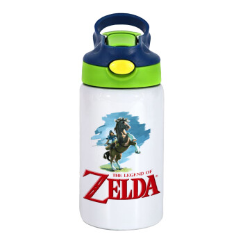 Zelda, Children's hot water bottle, stainless steel, with safety straw, green, blue (350ml)