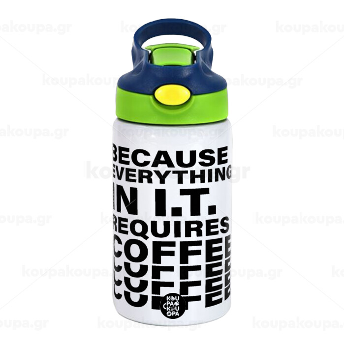 Because everything in I.T. requires coffee, Children's hot water bottle, stainless steel, with safety straw, green, blue (350ml)