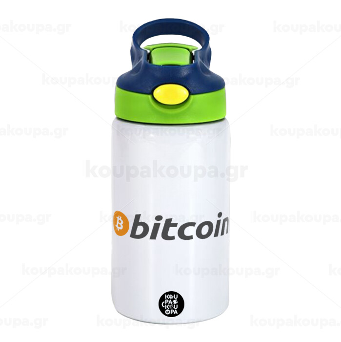 Bitcoin Crypto, Children's hot water bottle, stainless steel, with safety straw, green, blue (350ml)