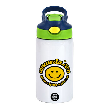Concarda, Children's hot water bottle, stainless steel, with safety straw, green, blue (350ml)